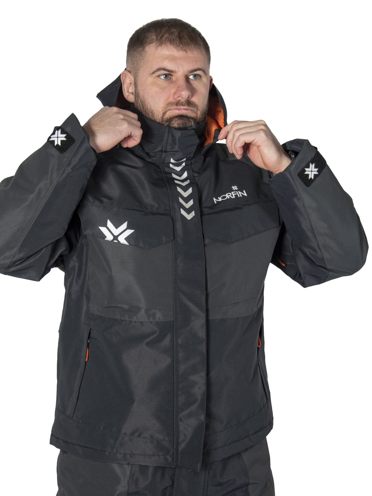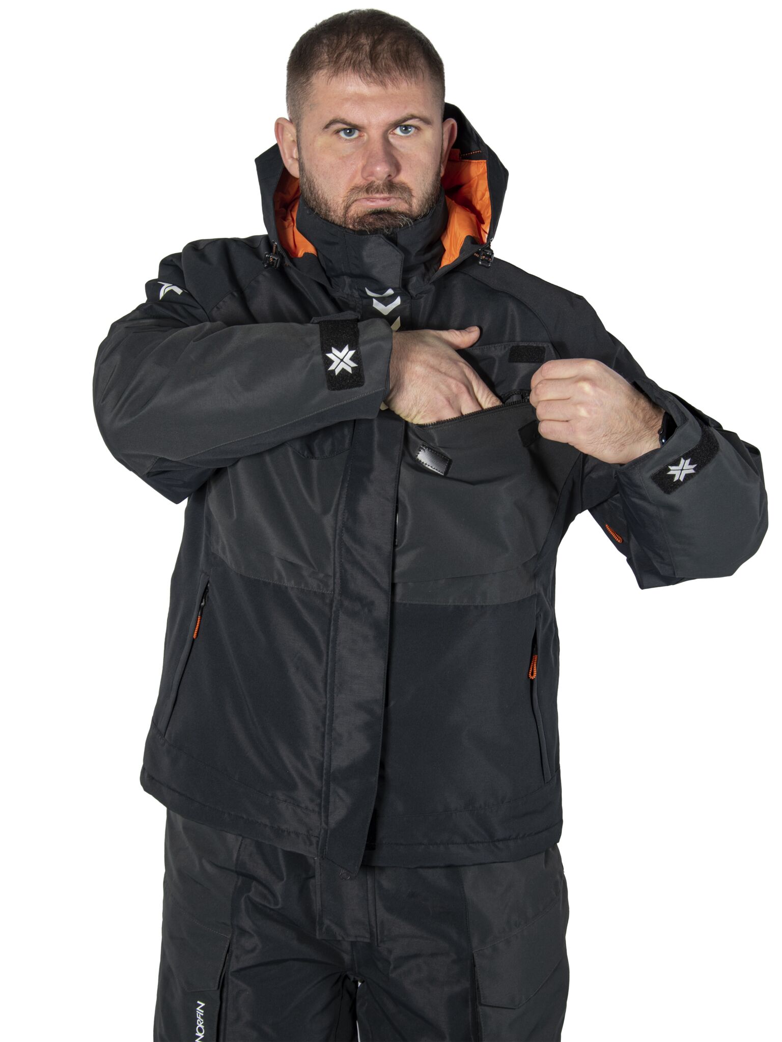 разм.M/курт. и полукомб/мат.Nortex Breathable/Водонепр.10000мм на кв.м/Дыш.спос.мат.6000г на кв.м за 24ч./Утепл.THERMO GUARD/ цв.черн.,сер./темп.-5град.С
